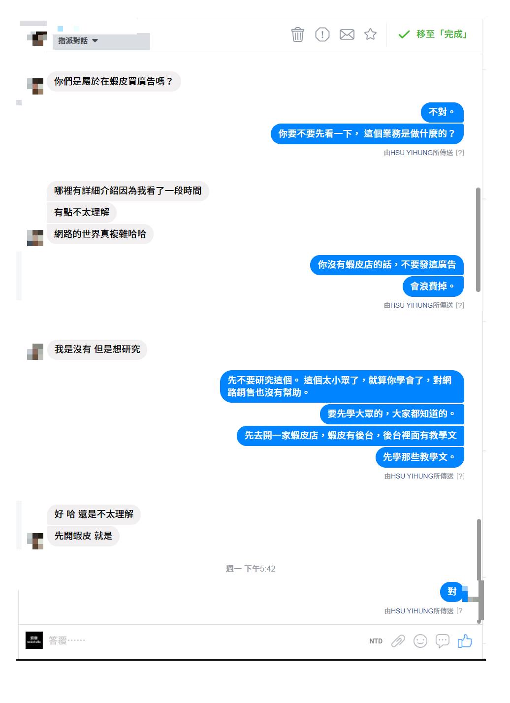 所以,如果公司老闆只在乎客服人員心情,不在乎整體公司的話,那目前不適合蝦廣,不要買,真的!